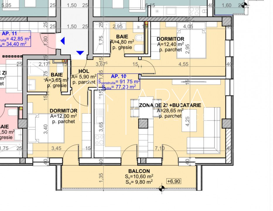 Apartament 3 camere – Etaj 2 | 91,75 mp